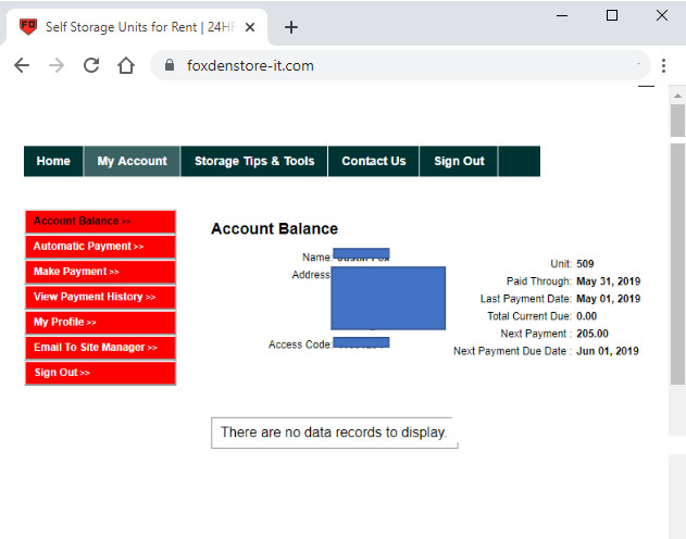 Your Fox Den Store-It Account Online